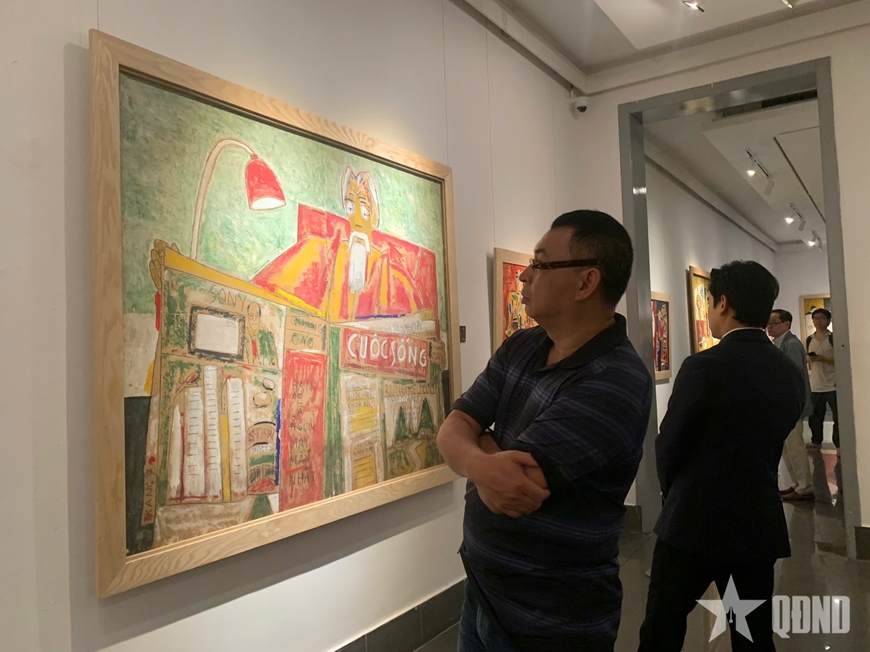Bước vào không gian trưng bày, người xem như được gợi mở một thế giới đa sắc với hơn 50 tác phẩm gồm hội họa, phác thảo và các tạo hình bằng đất, kim loại. Trong đó có 35 tác phẩm hội họa cùng 19 bản nặn tay, uốn cắt kim loại. Mỗi công trình nghệ thuật tựa như một “lát cắt” tâm tưởng, soi chiếu hành trình sáng tạo bền bỉ của cố họa sĩ qua từng giai đoạn. Đây là nơi công chúng cảm nhận rõ nhất dòng chảy sáng tạo nguyên sơ, trực diện, nơi hội họa và điêu khắc giao thoa, soi chiếu lẫn nhau. Những nét vẽ phóng khoáng cùng gam màu ấm nhẹ gợi lên cảm giác thanh bình nhưng vẫn ẩn chứa chiều sâu, như một dòng chảy lặng lẽ của suy tư, mời gọi khán giả bước vào để tự chiêm nghiệm, đối thoại với chính những góc khuất gai góc hay sự mềm mại ẩn sâu trong tâm hồn mình.