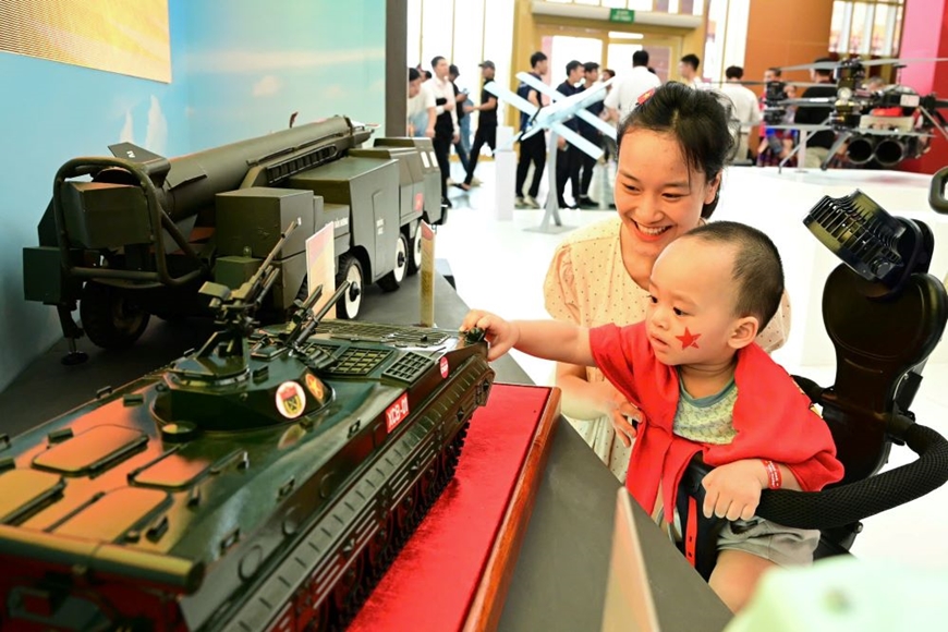 | Các cựu chiến binh và người thân tham quan khu trưng bày ngoài trời của Bộ Quốc phòng. |