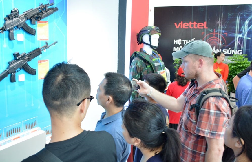| Không gian trưng bày của Bộ Quốc phòng thu hút nhiều khách trong và ngoài nước tham quan. |