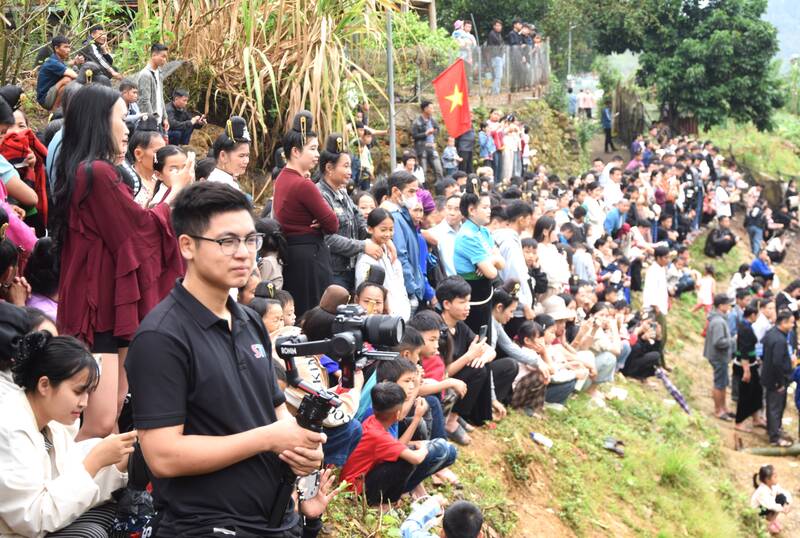 Người dân và du khách cổ vũ các đội đụa thuyên trong Lễ hội Nàng Han, xã Mường La, tỉnh Sơn La. Ảnh: Trường Sơn