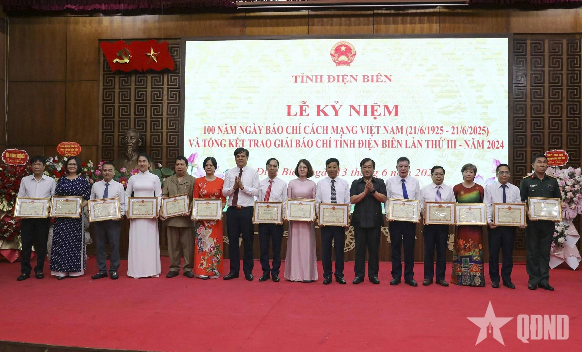 Nhân dịp này, Ban tổ chức giải Báo chí tỉnh Điện Biên đã trao 4 giải nhất, 8 giải nhì, 12 giải ba và 20 giải khuyến khích cho các tác giả, nhóm tác giả đạt Giải Báo chí tỉnh Điện Biên lần thứ III năm 2024. UBND tỉnh trao khen thưởng tặng 7 tập thể và 14 cá nhân có thành tích xuất sắc trong công tác quản lý và thông tin tuyên truyền.