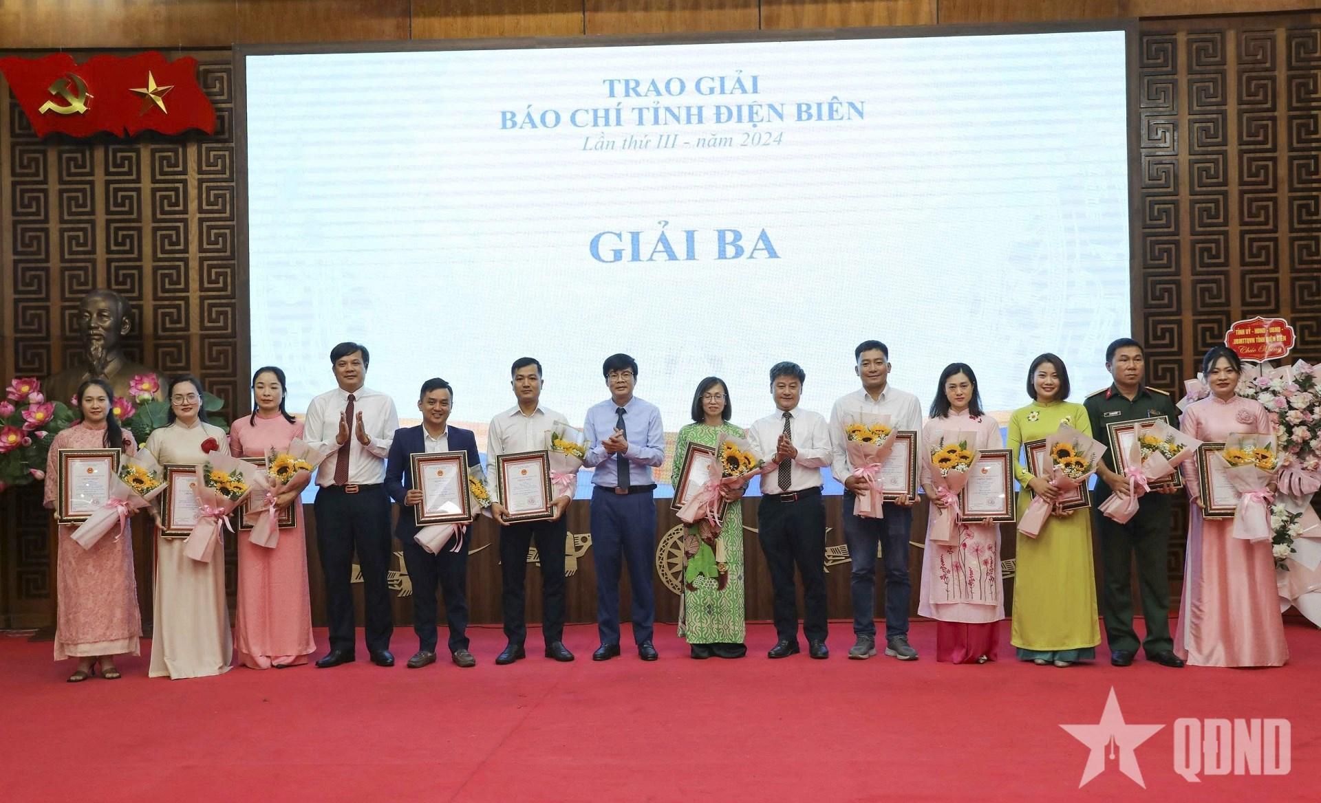 | Ban tổ chức giải Báo chí tỉnh Điện Biên trao giải 3 cho các tác giả, nhóm tác giả đạt Giải Báo chí tỉnh Điện Biên lần thứ III năm 2024. |