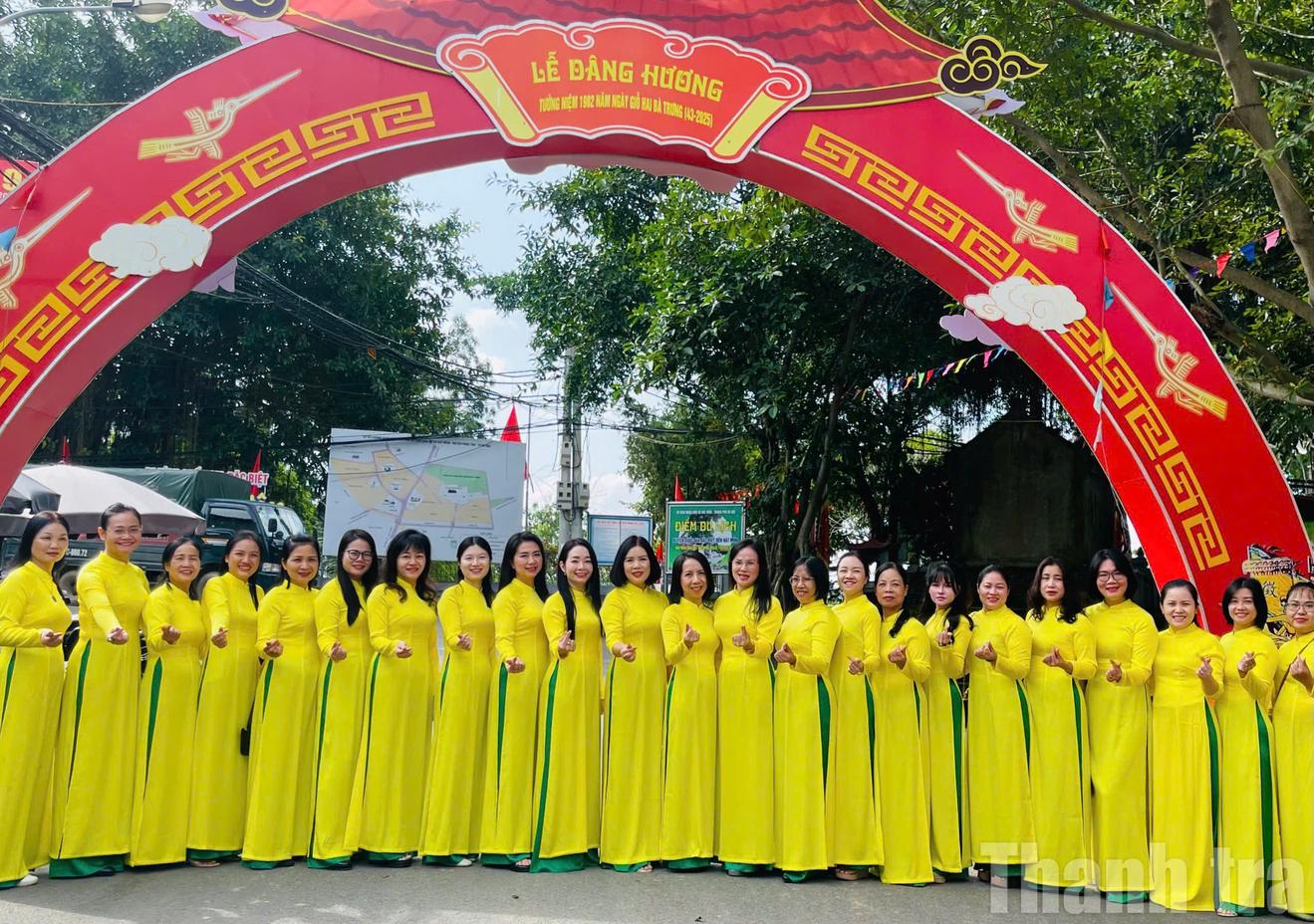 Đoàn đại biểu Hội Phụ nữ Thanh tra Bộ Công an tại khu vực Đền thờ Hai Bà Trưng. Ảnh: TM