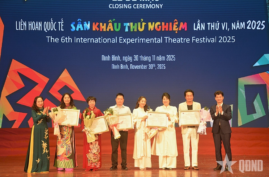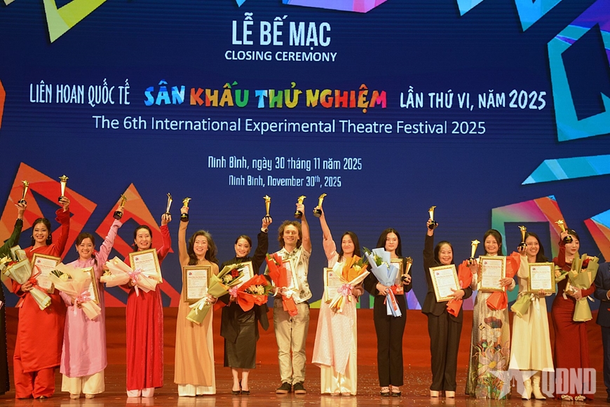 Sau hai tuần diễn ra sôi nổi trên các sân khấu ở 4 tỉnh, thành phố: TP Hà Nội, TP Hải Phòng, Ninh Bình, TP Hồ Chí Minh, Liên hoan quốc tế sân khấu thử nghiệm lần thứ VI, năm 2025 kết thúc bằng lễ bế mạc và trao giải diễn ra tối 30-11, tại Nhà hát Phạm Thị Trân (phường Hoa Lư, tỉnh Ninh Bình). Nhà hát Chèo Quân đội đoạt giải Dàn nhạc xuất sắc và 4 giải cá nhân nghệ sĩ.