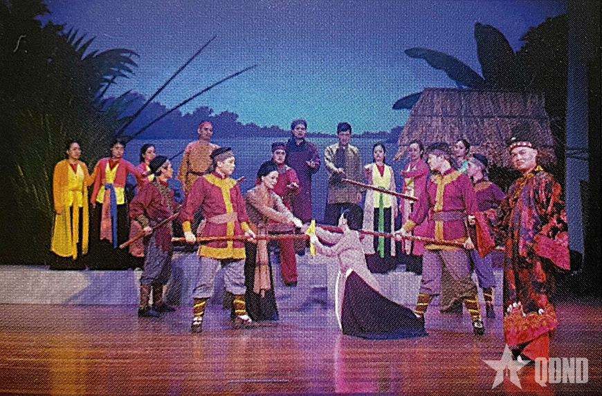 | Cảnh trong vở chèo "Câu chuyện tình yêu" của Nhà hát Chèo Quân đội. |