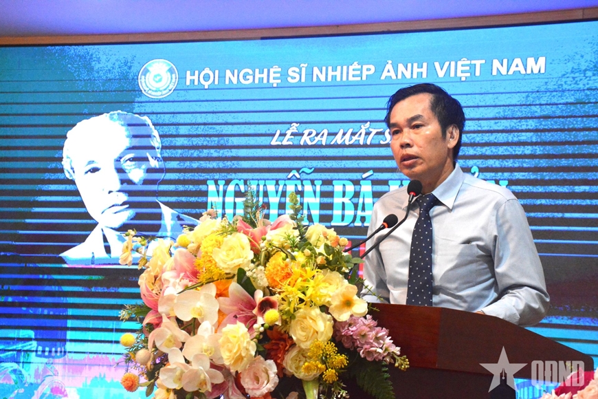 | Nghệ sĩ nhiếp ảnh Hồ Sỹ Minh, Phó chủ tịch Thường trực Hội Nghệ sĩ Nhiếp ảnh Việt Nam, Tổng biên tập Tạp chí Nhiếp ảnh và Đời sống phát biểu tại lễ ra mắt sách. |