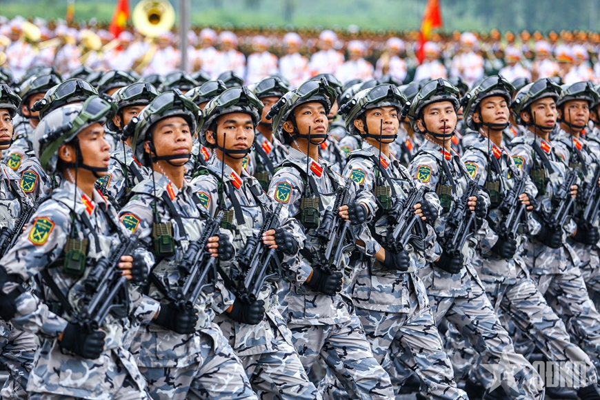 Những bước quân hành khẳng định khí thế Việt Nam trong tổng hợp luyện. |