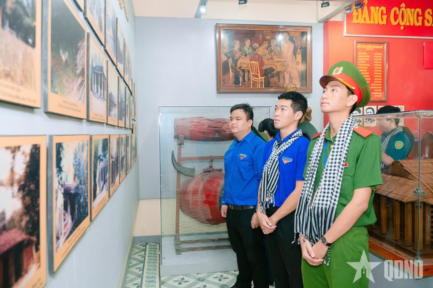 | Ban tổ chức hội trại và các thành viên tham quan di tích, địa chỉ đỏ trên địa bàn. |