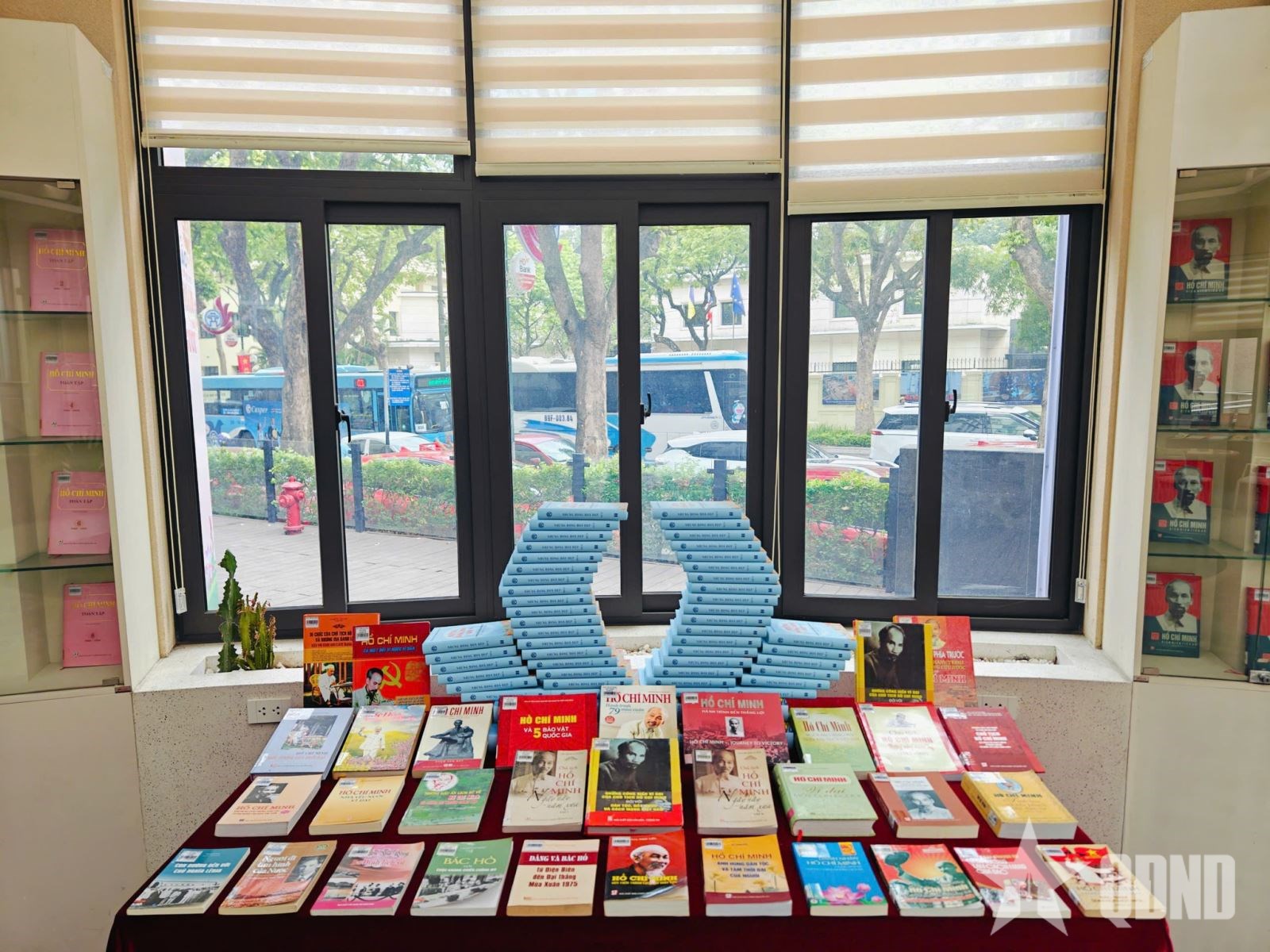 Một góc trưng bày sách, báo "Hồ Chí Minh đẹp nhất tên Người". Ảnh do Trung tâm Văn hóa và Thư viện Hà Nội cung cấp |