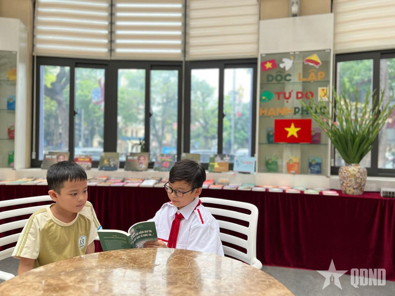| Học sinh đọc sách tại khu trưng bày. Ảnh do Trung tâm Văn hóa và Thư viện Hà Nội cung cấp |