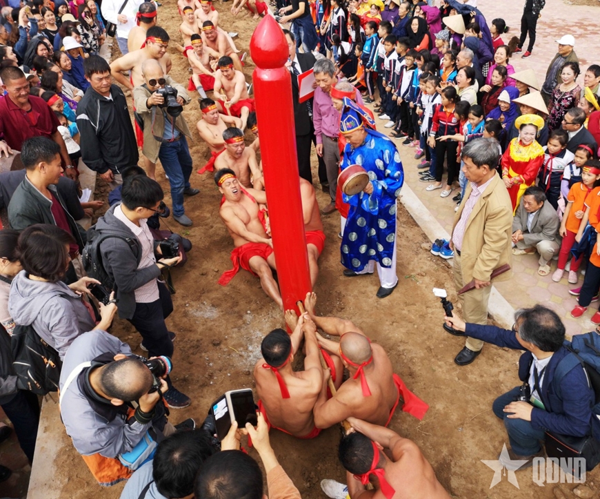 | Thực hành nghi lễ và trò chơi kéo co ngồi tại đền Trấn Vũ, phường Long Biên, Hà Nội. Ảnh: TRẦN HUẤN |